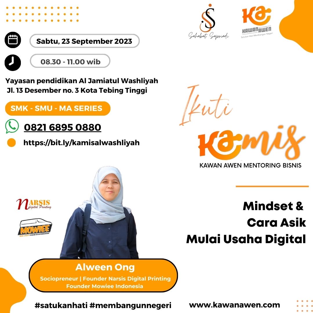 Tebing Tinggi, 23 September 2023 - Suasana harap dan semangat mewarnai ruang-ruang kelas di Madrasah Aliyah Alwashliyah, Tebing Tinggi, saat acara besar berlangsung. Seminar Wirausaha tentang Mindset dan Cara Asik Membangun Usaha Digital telah tiba. Dengan partisipasi 200 siswa Madrasah Aliyah Alwashliyah yang penuh semangat, seminar ini diadakan untuk memberikan wawasan penting tentang wirausaha dan teknologi digital.